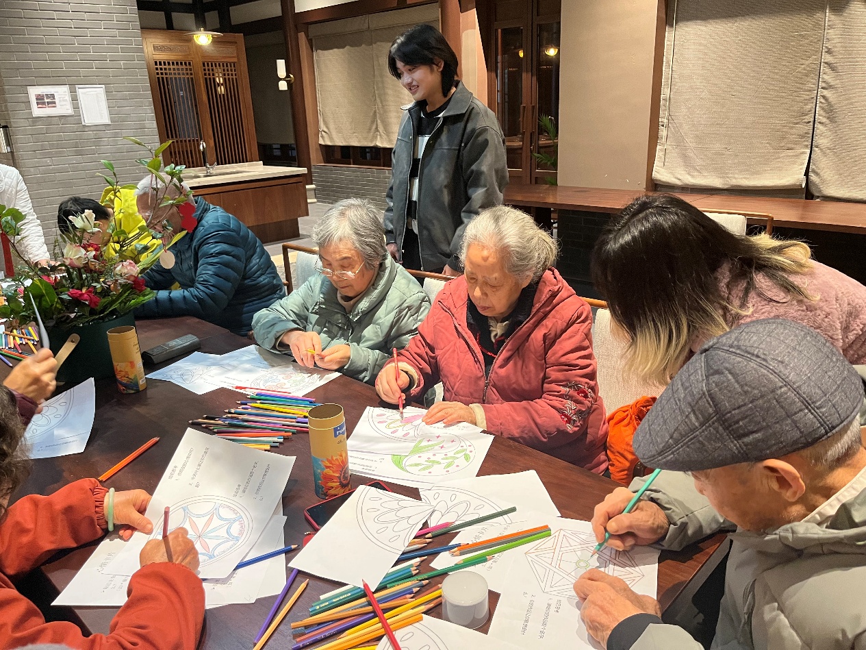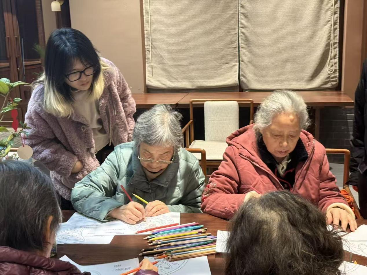 1229日,社会工作与健康管理学院(心理健康教育中心)高倩云博士带领学生李青秋、张墉、侯思琪,前往温江区太保家园养老机构,开展心理关怀实践活动。本次活动包括一对一老人心理辅导与“曼陀罗暖心时光”团体绘画活动,旨在通过专业心理支持提升老年人心理健康水平。